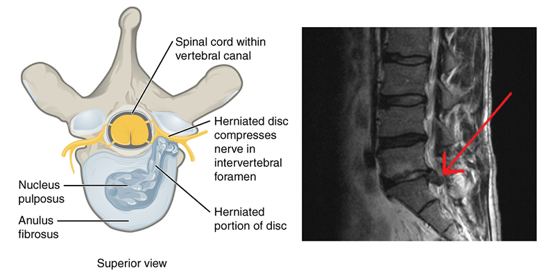 If there’s a tear or weakness in the outer ring, the nucleus can push outward.