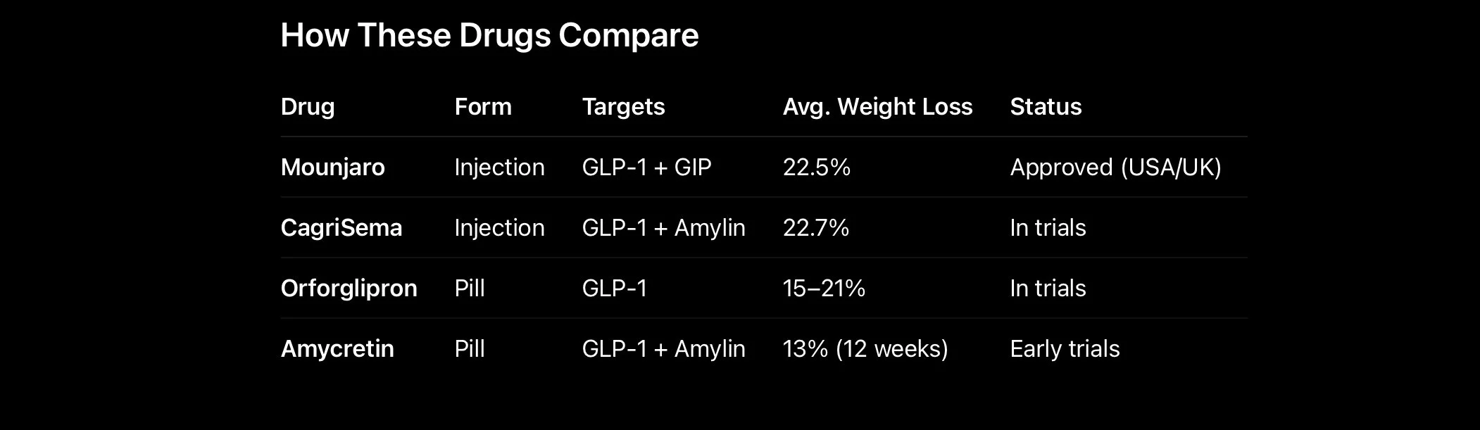 Over the past few years, drugs like Ozempic (semaglutide) and Mounjaro (tirzepatide) have transformed the weight loss and type 2 diabetes market. But pharmaceutical innovation hasn’t stopped there—a new wave of even more powerful medications is on the horizon, promising greater weight loss, improved blood sugar control, and more convenient dosing options.